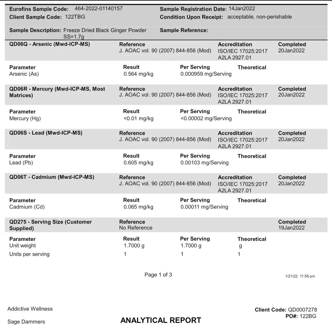 50g FREEZE DRIED BLACK GINGER fra Addictive Wellness